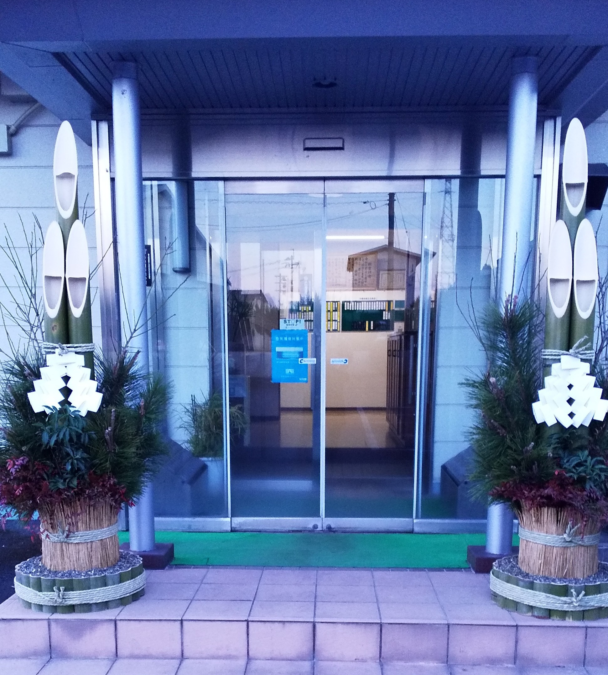 毎年、恒例の大分電子社員手作りの門松を、今年も三重工場玄関に飾りました。